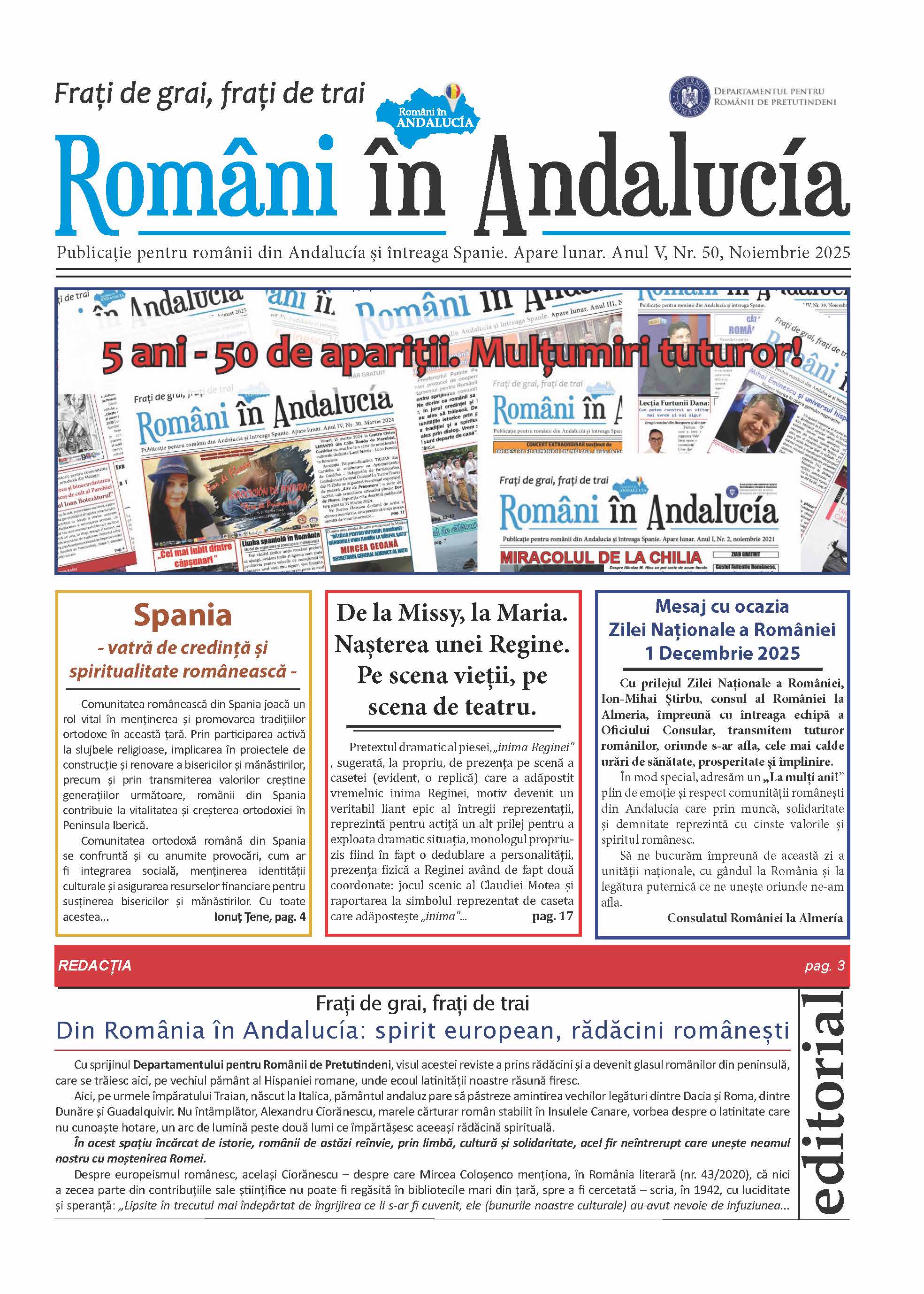 A apărut numărul 50 al Publicației ”Români in Andalucía – Frați de grai, frați de trai”, Noiembrie, 2025