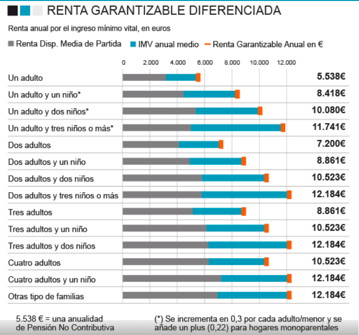 Ajutorul este destinat persoanelor aflate în situații vulnerabile, al căror venit este mai mic de 200 € în cazul unei persoane care trăiește singură și are un loc de muncă cu normă parțială care generează cel mult această sumă. Dacă este vorba de o unitate familiară, va fi necesar să se dovedească că venitul familiei este sub 450 de euro. De asemenea, solicitanții, trebuie să aibă rezidență legală în Spania și o vârstă cuprinsă între 23 și 65 de ani pentru a putea beneficia de acest ajutor.