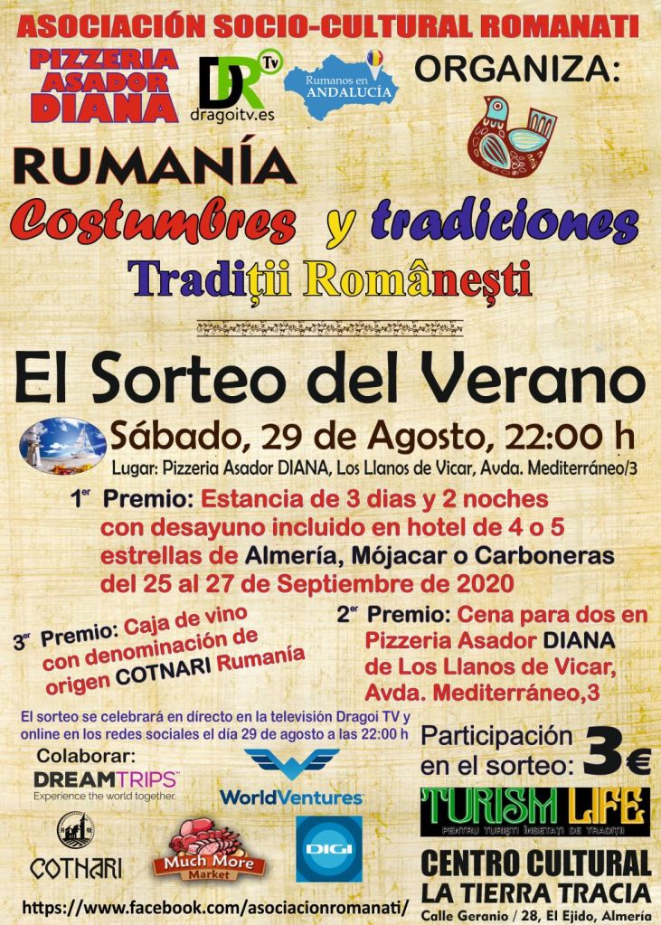 Colaborar: COTNARI, MUCH MORE MARKET, DIGI, WORD VENTURES, DREAM TRIPS, ADRIA MINI-MARKET, BodyGym Mojonera, Centro Cultural La Tierra Tracia, El Ejido, Almeria