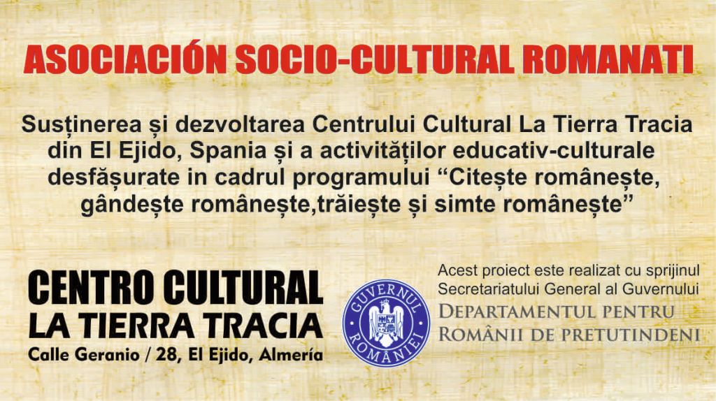 In perioada septembrie-decembrie 2020, Asociación Socio-Cultural Romanati din El Ejido, Almeria, Spania desfășoară proiectul – Susținerea și dezvoltarea Centrului Cultural La Tierra Tracia din El Ejido, Spania și a activităților educativ-culturale desfășurate in cadrul programului „Citește românește, gândește românește, trăiește și simte românește“.