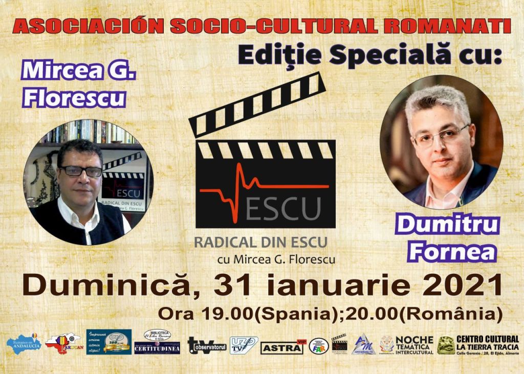 Emisiunea online Radical din Escu cu Mircea G. Florescu, președintele Asociación Socio Cultural Romanati și redactor la ziarul Români in Andalucia din cadrul Centro Cultural La Tierra Tracia, El Ejido, Almeria aduce in prin plan o nouă temă de interes social de această dată, pentru românii care trăiesc și muncesc in Spania sau in Europa. Duminică 31 ianuarie in cadrul emisiunii s-a abordat problema impactului reformelor legislative ale UE privind transportul rutier, printr-o dezbatere la care au participat Dumitru Fornea, secretar general al Confederației Sindicale Naționale MERIDIAN, membru al Comitetului Economic și Social European; Florin Catană, președintele Sindicatului Șoferilor Meridian; Florian Tudor Ivan, președintele Asociației Profesionale a Transportatorilor și Aurelian Tudor, reprezentant al comunității românești din El Ejido; șofer, Almeria – Spania.