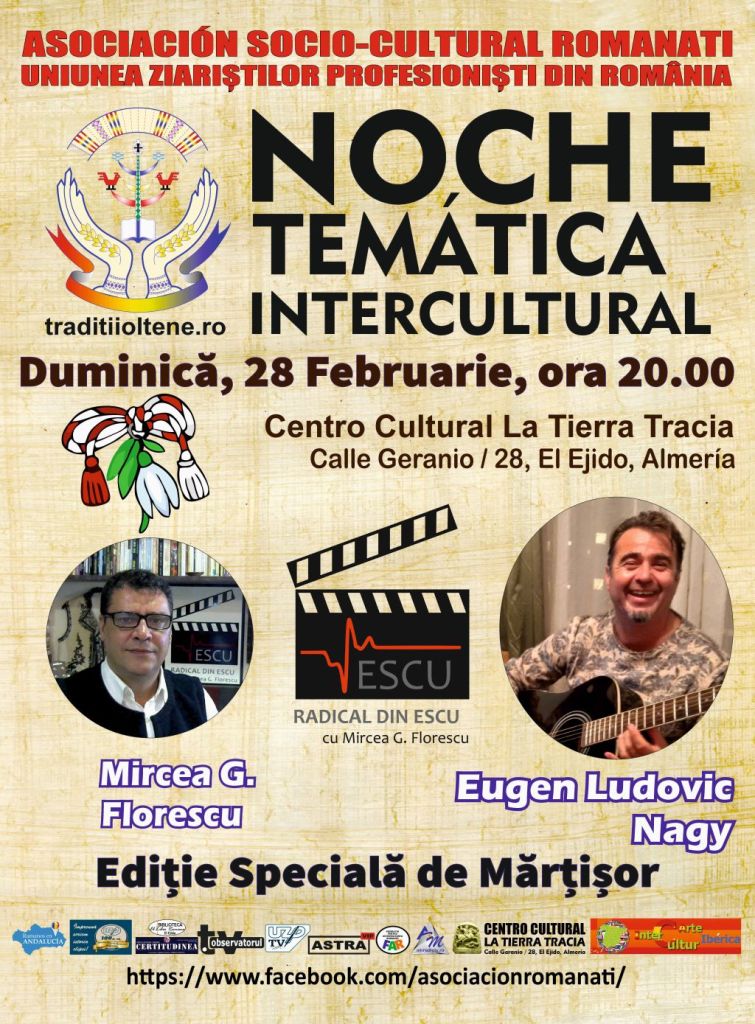 Duminică, 28 februarie 2021 de la ora 20.00, intr-o ediție specială de Mărțișor, invitat la „Radical din Escu” va fi artistul Eugen Ludovic Nagy, poet, muzician și cantautor, fondator al Asociației Interculturarte Iberica, Torrevieja, Alicante.