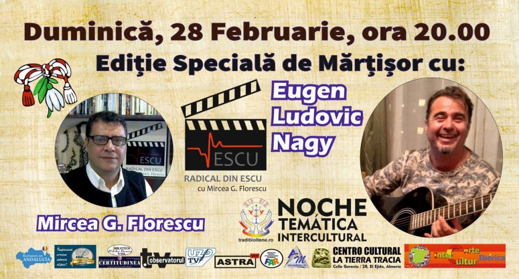 Duminică, 28 februarie 2021, intr-o ediție specială de Mărțișor, invitat la Centro Cultural La Tierra Tracia artistul Eugen Ludovic Nagy, poet, muzician și cantautor, fondator al Asociației Interculturarte Iberica, Torrevieja, Alicante.