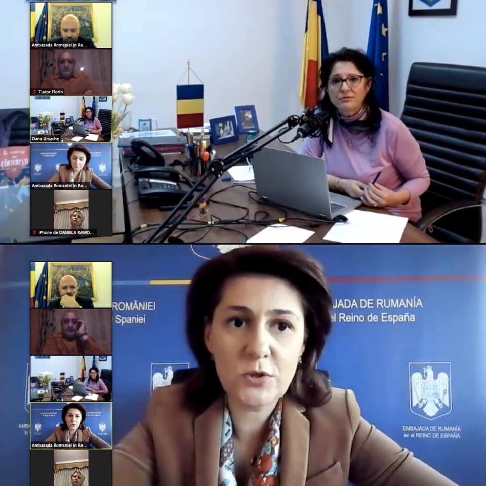 În data de 14 martie 2021, Ambasada României în Regatul Spaniei a organizat o videoconferință cu reprezentanții mediului asociativ, ai cultelor și ai grupurilor civice din Spania, cu participarea secretarului de stat în cadrul Departamentului pentru Românii de Pretutindeni, doamna Oana Ursache.