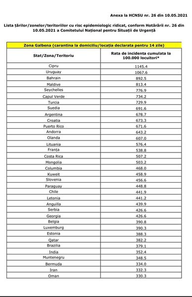 Lista țărilor/zonelor cu risc epidemiologic ridicat poate fi consultată aici: https://www.mai.gov.ro/…/Anexa-nr-2-Lista-State-cu-risc…