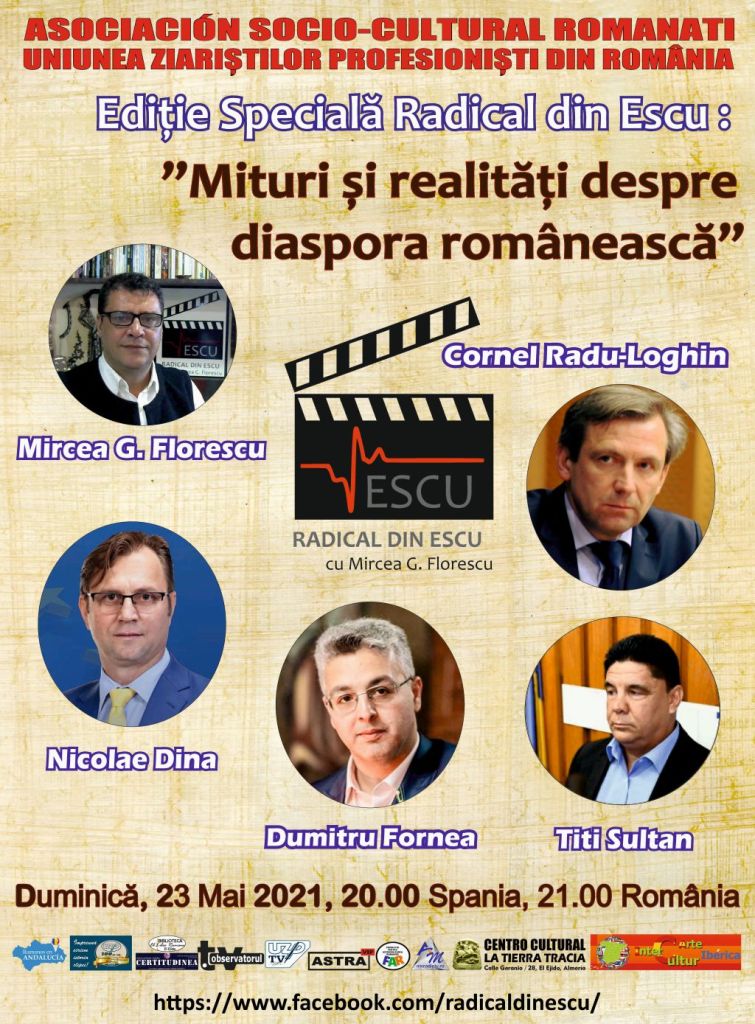 Duminică, 23 mai 2021 de la ora 20.00 Spania, 21.00 România – Ediție Specială Radical din Escu cu Mircea G.Florescu