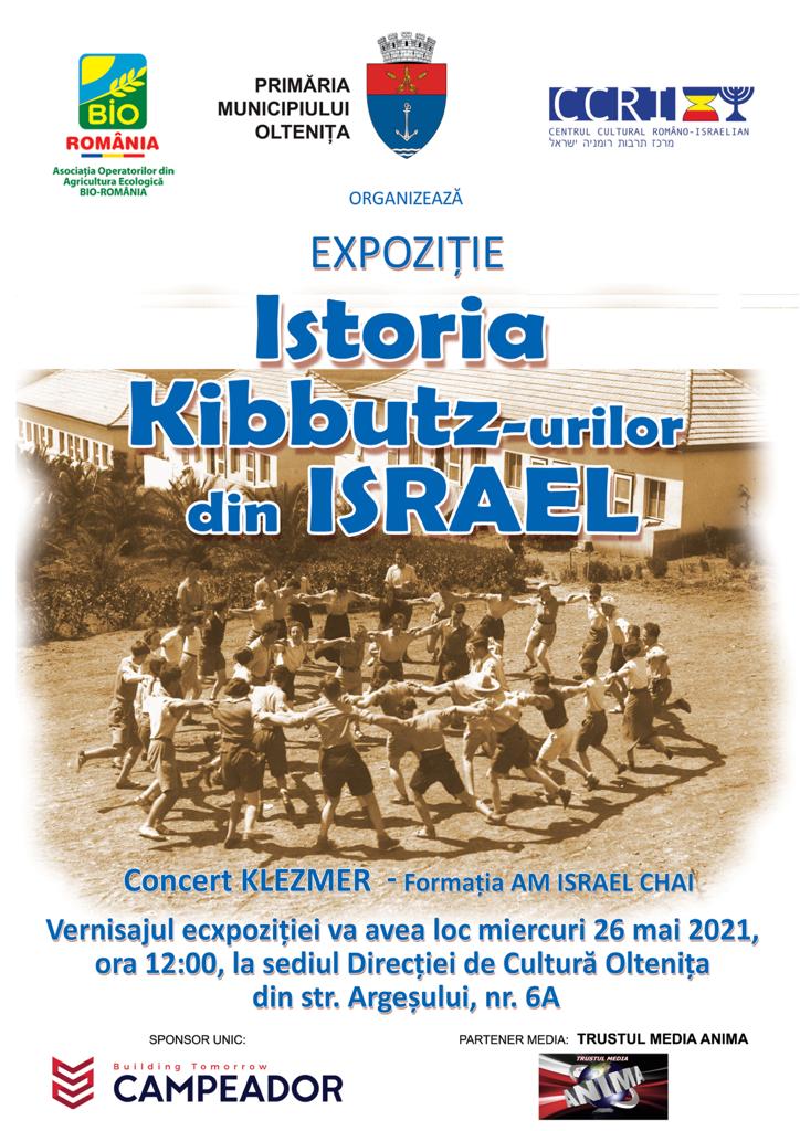 Cu ocazia Zilei Independenţei, a aniversării a 73 de ani de existenţă a Statului Israel, Asociaţia „Centrul cultural româno – israelian” (CCRI) din România, în colaborare cu Primăria municipiului Olteniţa şi Direcția de Cultură Olteniţa, vă invită să participaţi la vernisajul expoziţiei „Un secol de istorie a kibbutz-ului în Israel”.