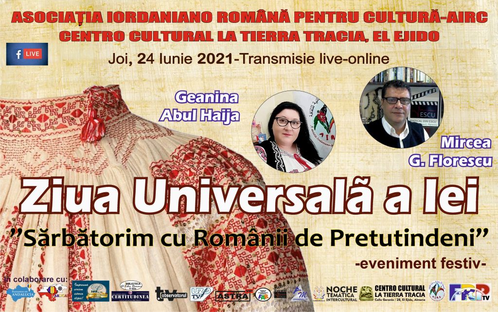Joi, 24 iunie 2021 la Centro Cultural La Tierra Tracia din El Ejido, Spania pe parcursul a 4 ore am sărbătorit impreună online ZIUA UNIVERSALĂ A IEI intr-o călătorie in mai multe țări și continente in care viețuiesc Românii de Pretutindeni. FRT-TV a transmis integral evenimentul: