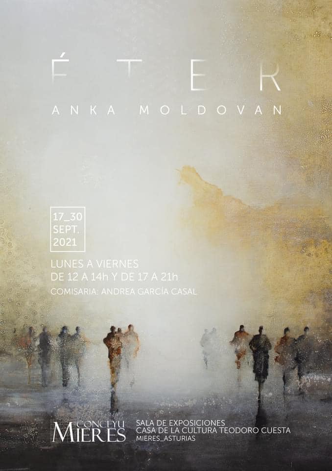 Pictorița româncă Anka Moldovan expune pentru prima dată în Asturias, regiune care a primit-o cu brațele deschise în urmă cu doi ani, când a decis să se dedice exclusiv picturii, și care, potrivit artistei, o inspiră în procesul de creație și de transpunere pe pânză a ceea ce înseamnă pentru ea eterul, văzduhul, o temă centrală a universului său artistic.