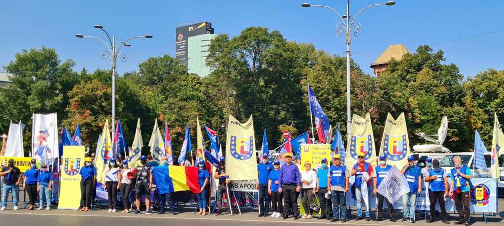 Sindicatul Național ,,Forța Legii” a organizat acţiunea de protest în Piaţa Victoriei, alături de alte organizații sindicale, ale transportatorilor feroviari (FSTFR) și CFR Călători, ale cadrelor militare disponibilizate (SCMD) și ale lucrătorilor din spitalele CFR (USS-CFR).