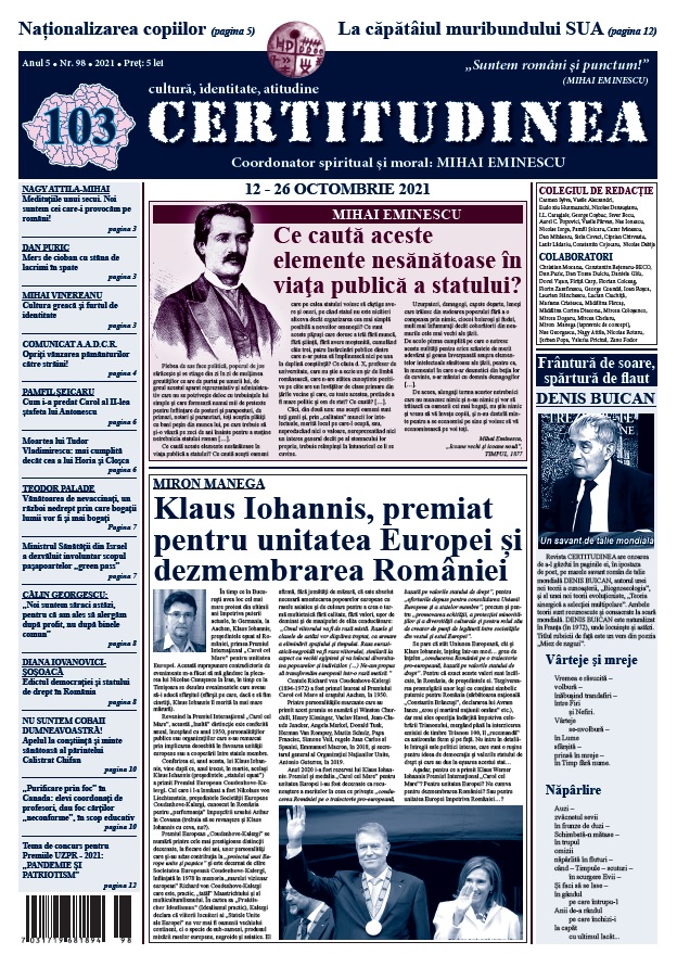 - MIRON MANEGA. Klaus Iohannis, premiat pentru unitatea Europei și dezmembrarea României
