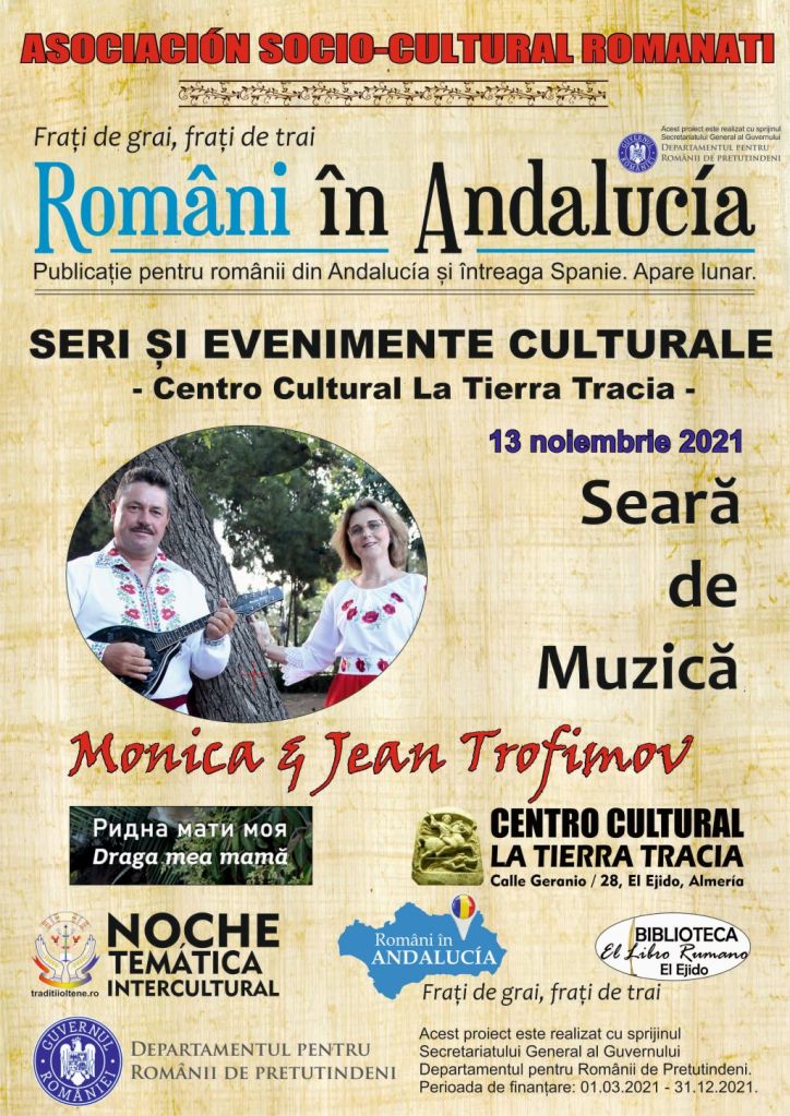 Sâmbătă, 13 noiembrie 2021 de la ora 19.00 ne vom intâlnii cu Monica și Jean TROFIMOV in cadrul unei seri speciale in care cei doi artiști români stabiliți in Alicante, Valencia vor prezenta ultimul lor album: “Draga mea mamă”. Seară tematică cu participare prezențială și online.