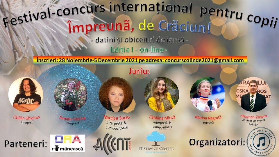 19 decembrie (ora va fi stabilită ulterior) – premierea concursului Regulamentul de participare precum și formularele de înscriere se găsesc pe pagina de Facebook a festivalului concurs!
