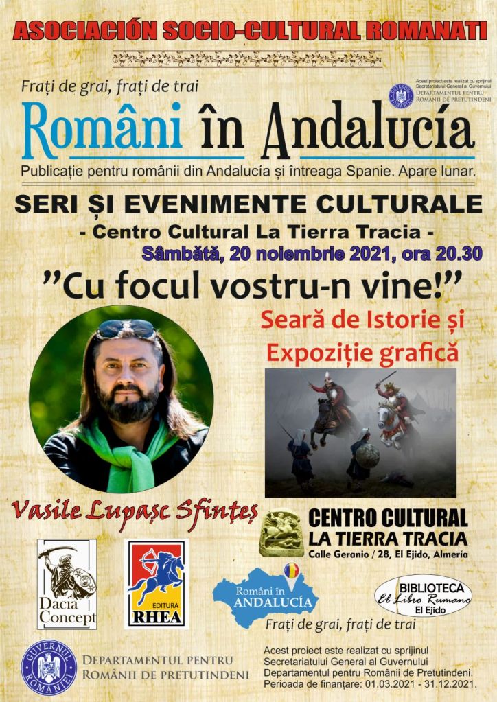 O seară de istorie ce se va desfășura in cadrul acestei expoziții grafice de excepție, părți ale proiectelor ”2020 – Anul Vlad Țepeș Drăculea” și ”2021 – Anul Tudor Vladimirescu” la Centro Cultural La Tierra Tracia in “Sala de Exposiciones”.