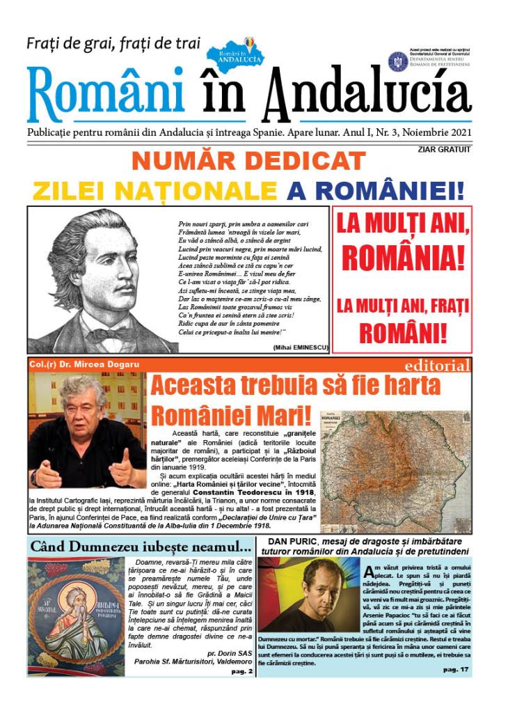 A apărut numărul 3 al Publicației ROMÂNI IN ANDALUCÍA – “Frați de grai, frați de trai”, un număr dedicat Zilei Naționale a României.