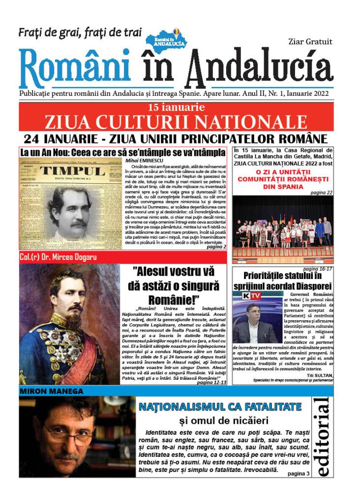 Astăzi, 24 ianuarie, de Ziua Unirii Principatelor Române a apărut numărul 1/2022 al Publicației Români in Andalucía. Mulțumirile noastre tuturor celor care au făcut posibilă această realizare.