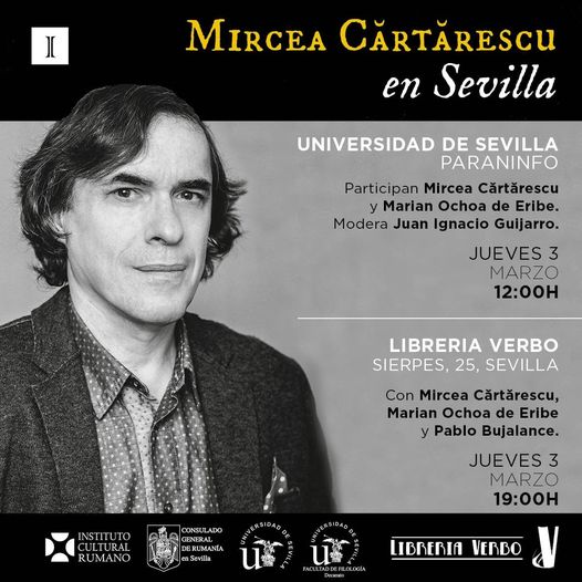 El Consulado General de Rumanía en Sevilla y el Instituto Cultural Rumano de Madrid junto con la Universidad de Sevilla y la Facultad de Filología, organizan el día 03 de marzo una serie de encuentros literarios con el conocido escritor rumano Mircea Cărtărescu.