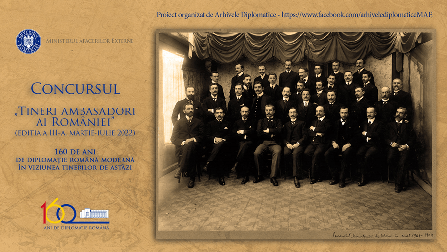 Concursul „Tineri ambasadori ai României” organizat de Arhivele Diplomatice ale Ministerului Afacerilor Externe cu tema: 160 de ani de diplomație română modernă în viziunea tinerilor de astăzi – (ediția a III-a, martie-iulie2022)