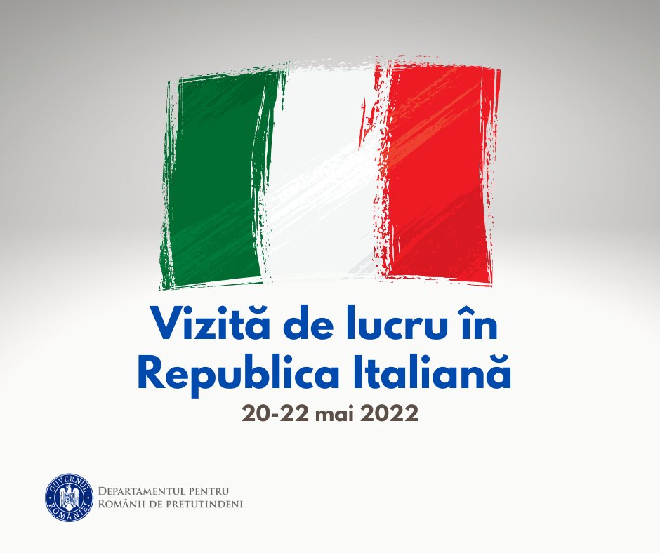 Din dorința de a avea un dialog concret și deschis, având în vedere prezența semnificativă a comunității românești pe teritoriul italian, delegația DRP se va deplasa la Roma în prima parte a vizitei de lucru. Ambasada României în Republica Italiană va organiza o întrevedere între secretarul de stat și reprezentanții mediului asociativ românesc din Italia.