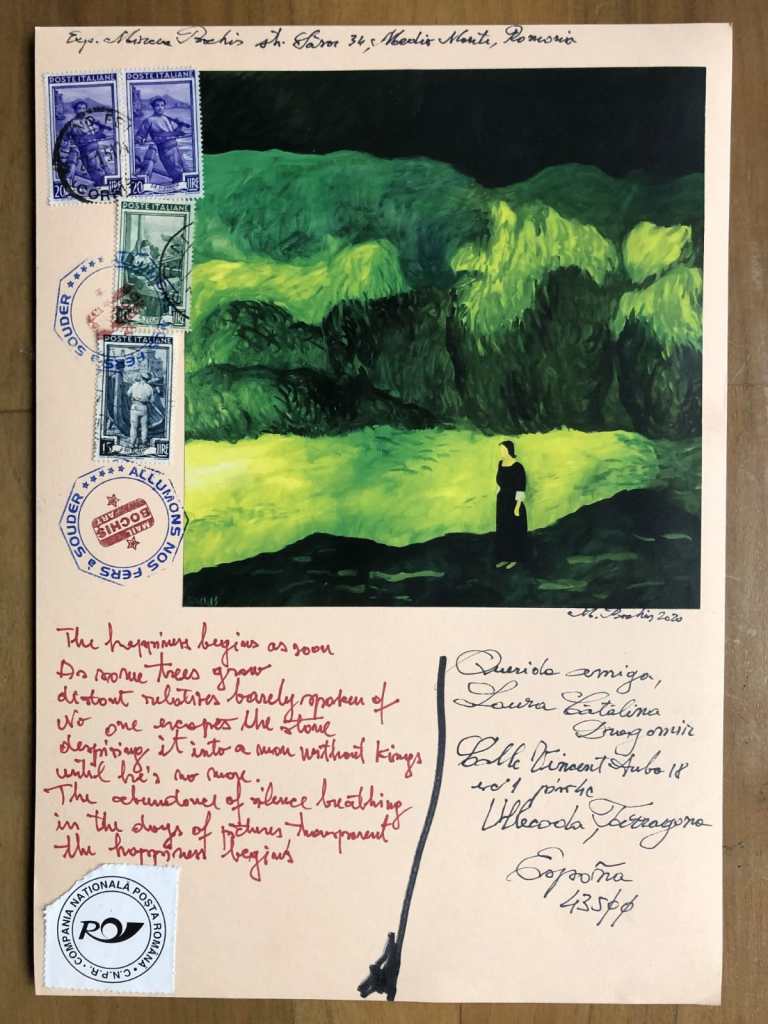El imaginar pictórico tiene ca fuente de inspiración los poemas de Laura Catalina Dragomir.