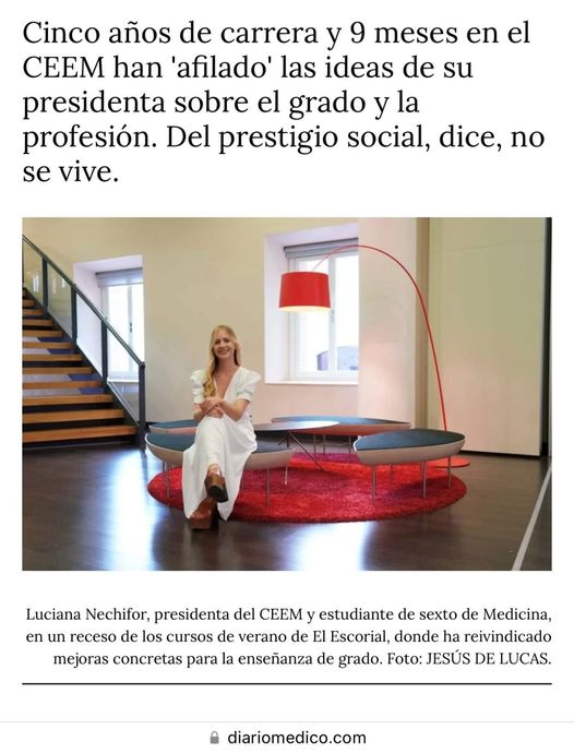 Încă o poveste de viață a unui #român care face cinste țării noastre în #Spania. Este vorba despre Luciana Nechifor, președinte al Consiliului Studenților la Medicină, cel mai important organism național care reprezintă universitățile din domeniu. Prin #muncă#implicare și #responsabilitate, Luciana a cucerit mediul de profil spaniol.