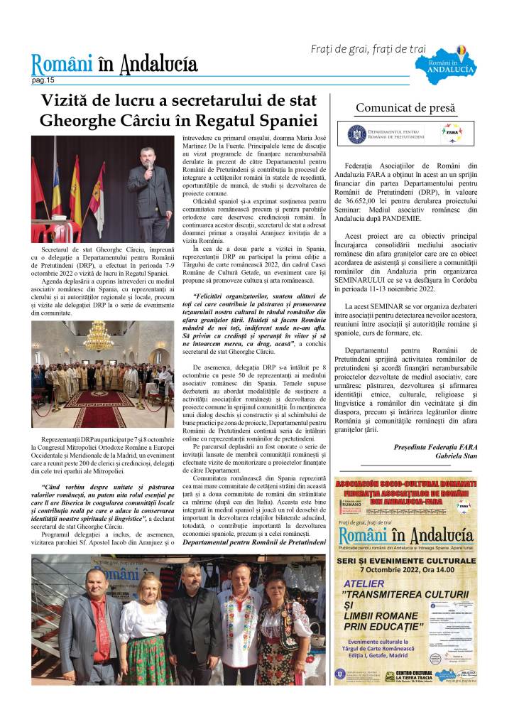 Publicația ”Români in Andalucía”, Nr.13, Anul II, Octombrie, 2022