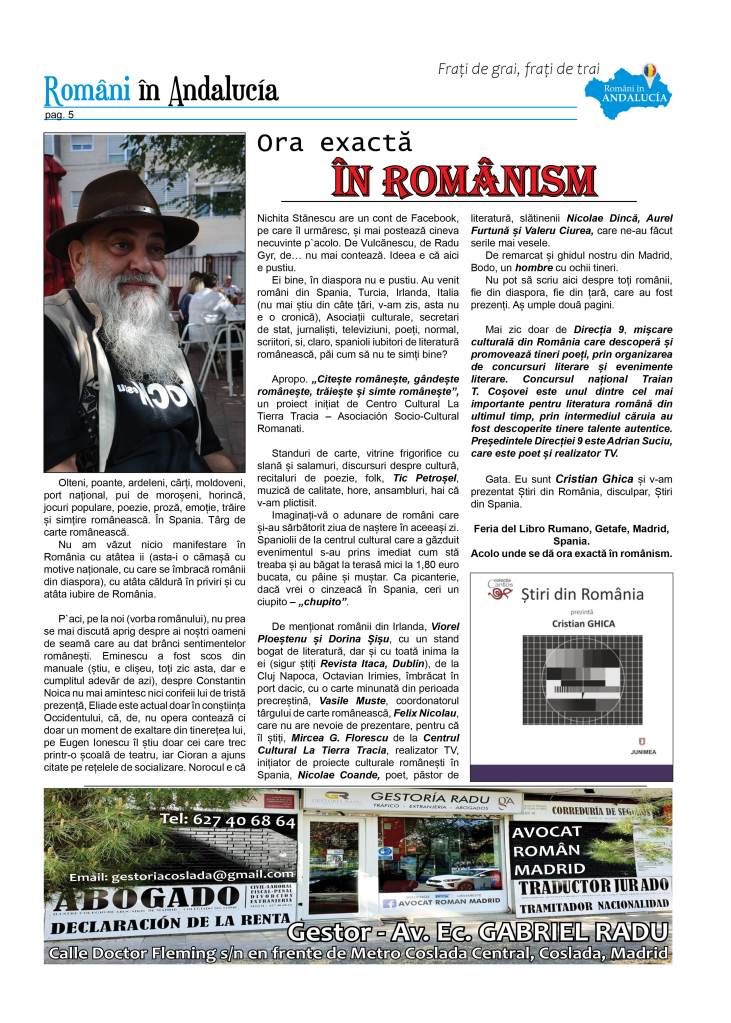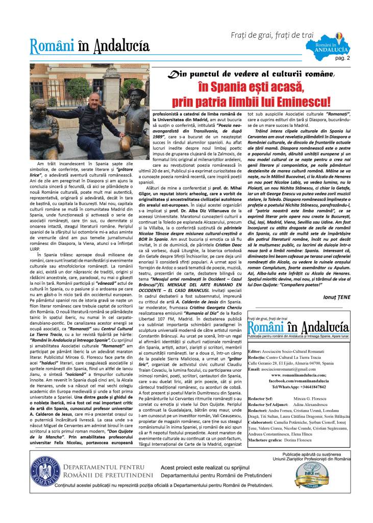 – Editorial – Ionuț Țene – Din punctul de vedere al culturii române, în Spania ești acasă, prin patria limbii lui Eminescu!