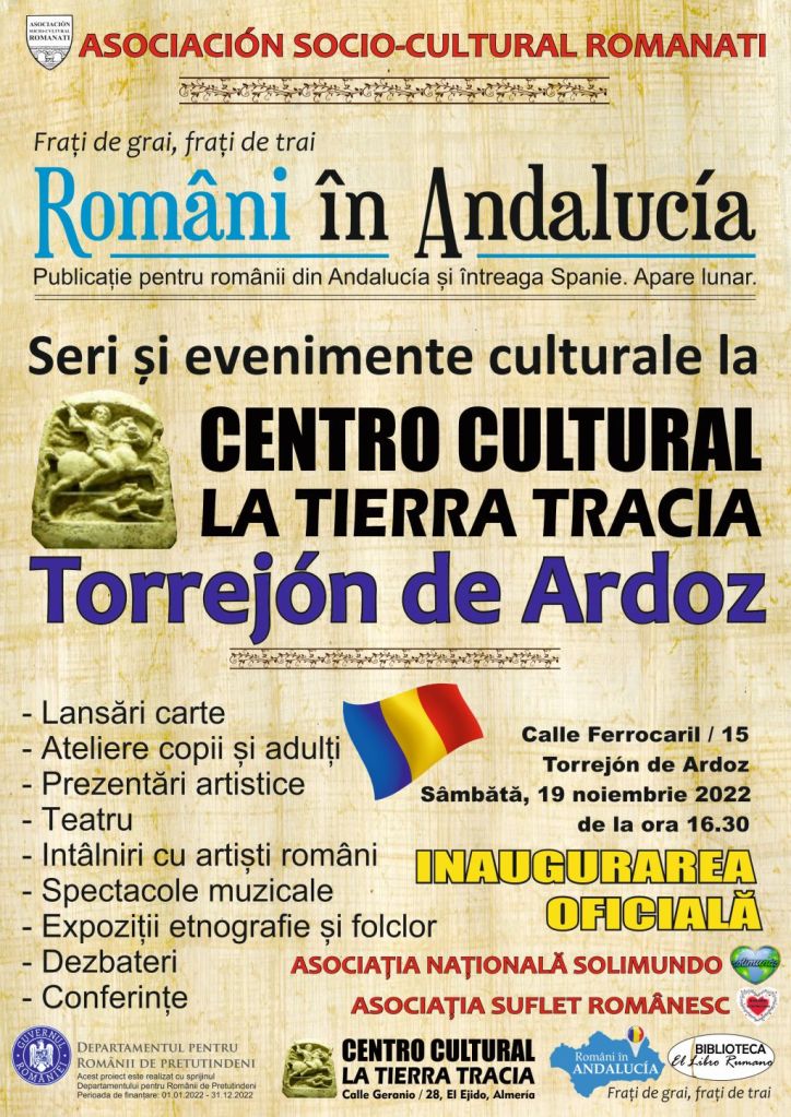 In 19 noiembrie 2022 de la ora 16.30, in Torrejón de Ardoz, Calle Ferrocaril nr. 15 va fi inaugurat un nou Centro Cultural La Tierra Tracia in comunitatea de Madrid care va funcționa in paralel cu Centro Cultural La Tierra Tracia din El Ejido, Almeria.