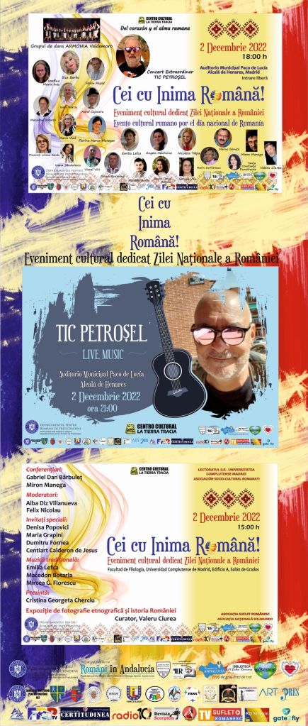 Vineri, 2 decembrie 2022 incepând cu ora 18.00 la Auditorio Paco de Lucía, Alcalá de Henares va avea loc un spectacol – eveniment cu participarea a numeroși artiști din Spania și România, personalități culturale și sociale, invitați speciali.