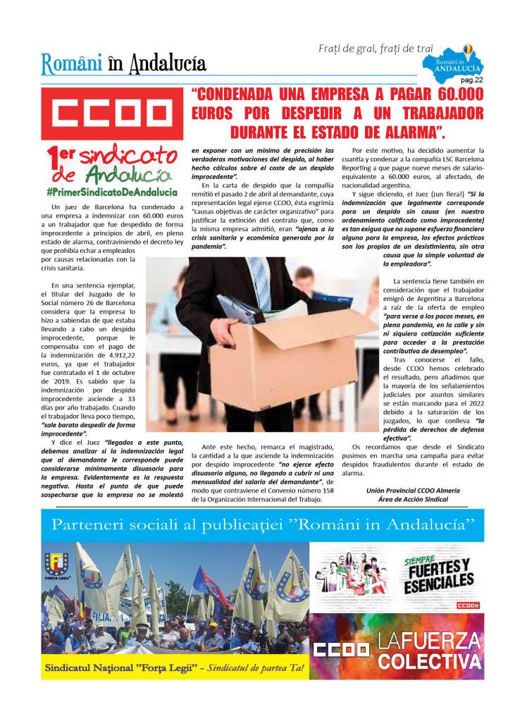 – Área de Acción Sindical Unión Provincial CCOO Almería – “CONDENADA UNA EMPRESA A PAGAR 60.000 EUROS POR DESPEDIR A UN TRABAJADOR DURANTE EL ESTADO DE ALARMA”