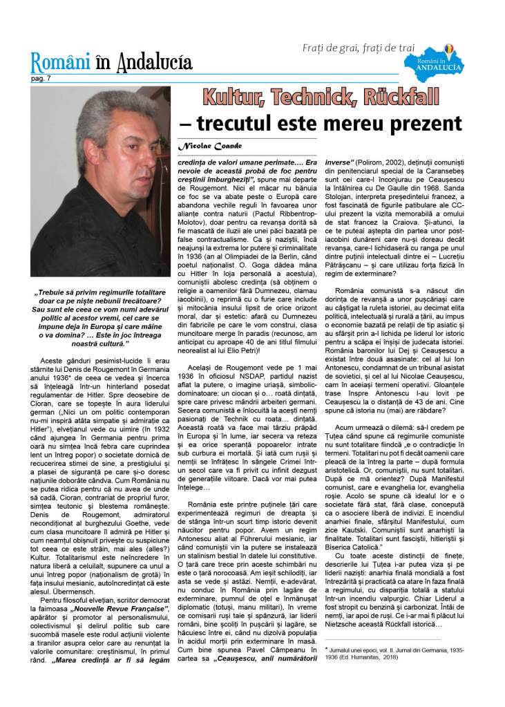 – Nicolae Coande – Kultur, Technick, Rückfall – trecutul este mereu prezent