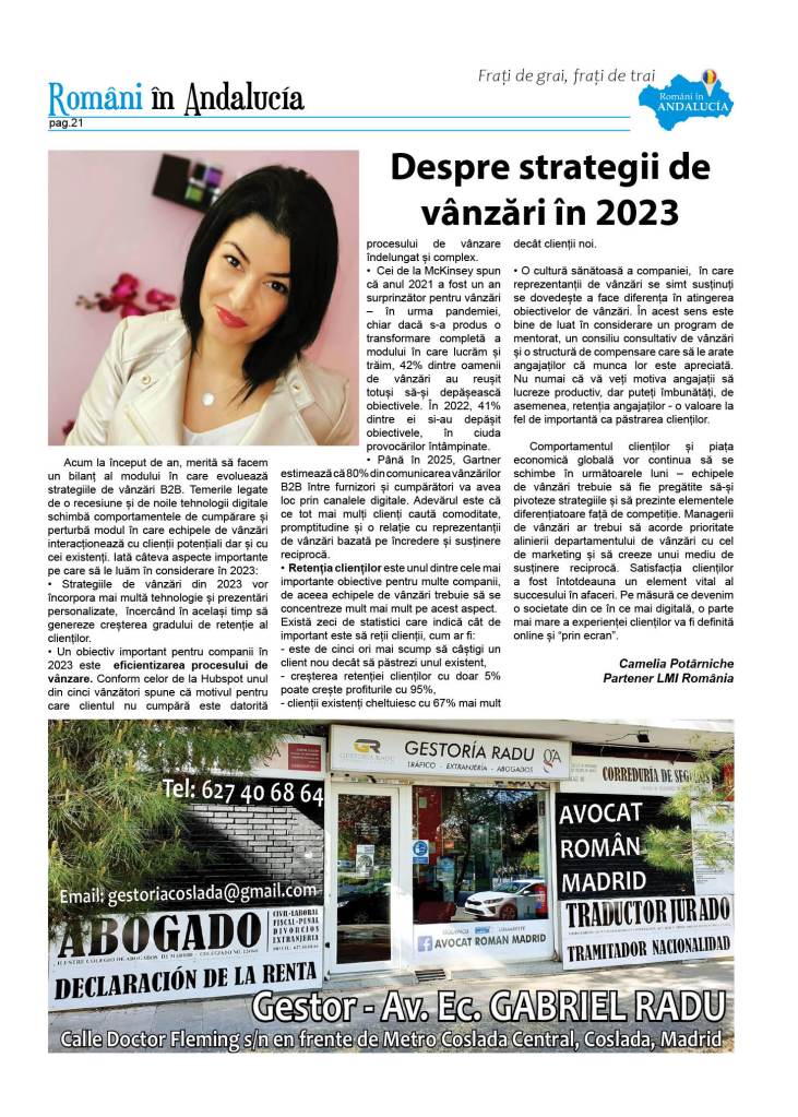– Camelia Potârniche – Despre strategii de vânzări în 2023