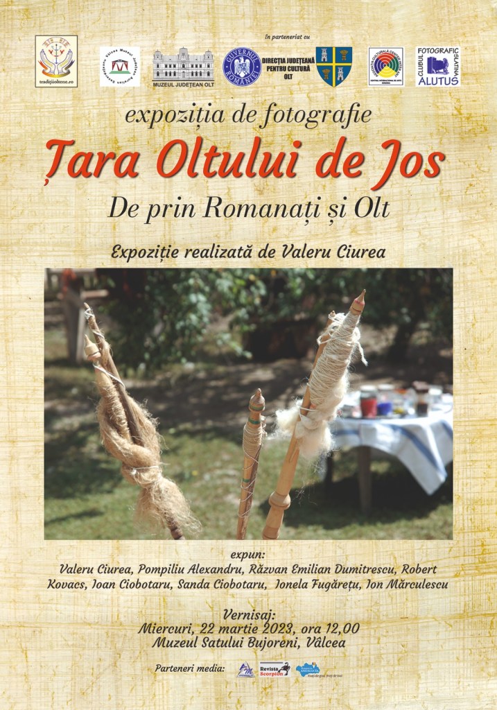 Tradiții oltene.ro vă oferă o expoziție de fotografie și bannere de prezentare cultural-turistică și gastronomică reunite sub titulatura „Țara Oltului de Jos. De prin Romanați și Olt”. Expoziția cuprinde un număr de nouă bannere cu informații și fotografii realizate de Valeru Ciurea precum și un număr de 40 de fotografii realizate de artiștii fotografi: Valeru Ciurea, Pompiliu Alexandru, Răzvan Emilian Dumitrescu, Robert Kovacs, Ioan Ciobotaru, Sanda Ciobotaru, Ionela Fugăretu și Ion Mărculescu.