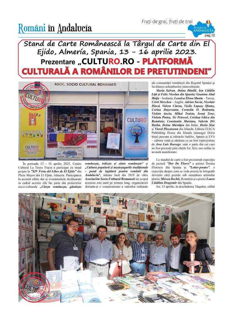 – Stand de Carte Românească la Târgul de Carte din El Ejido, Almería, Spania, 13 – 16 aprilie 2023. Prezentare „CULTURO.RO – PLATFORMĂ CULTURALĂ A ROMÂNILOR DE PRETUTINDENI“