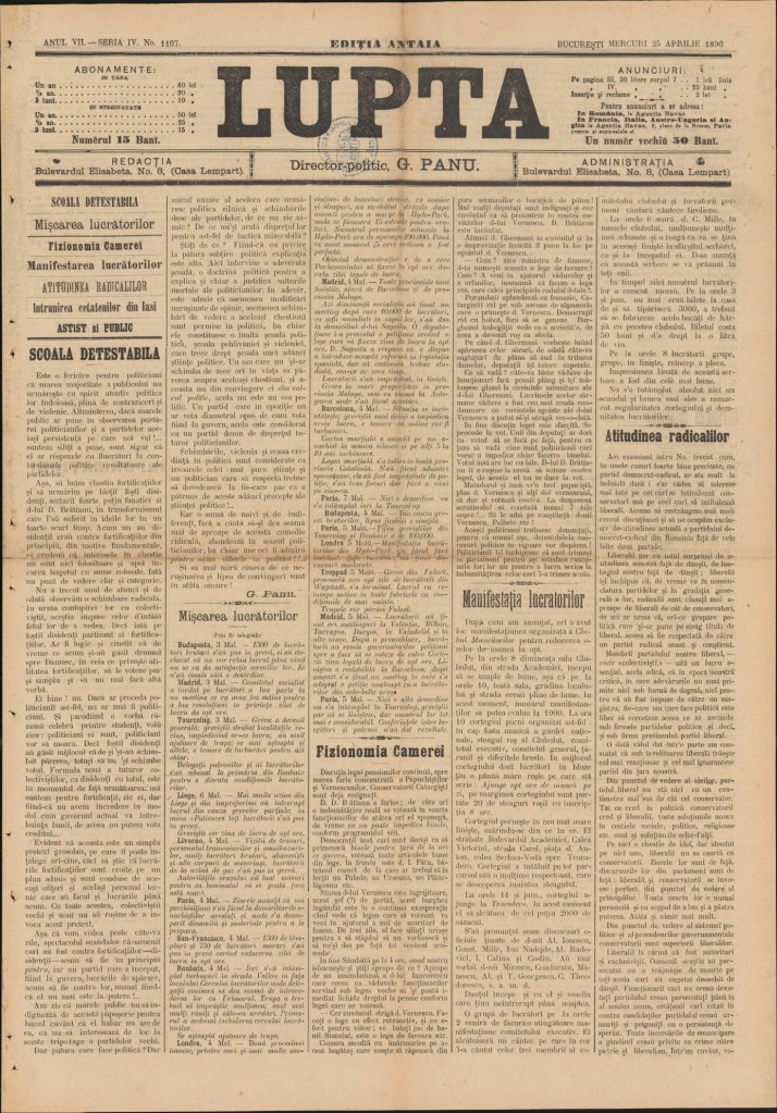 La rândul său, ziarul „Lupta”, avându-l ca director politic pe G. Panu, relata în paginile acestei publicații sub titlul „Manifestația lucrătorilor” desfășurarea mitingului de la București.