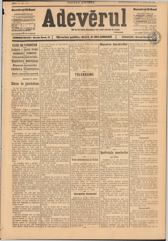 Astfel, ziarul „ Adevărul” expunea, sub titlul „ Manifestația Muncitorilor”, modul în care a fost organizată și desfășurată prima sărbătoare de 1 Mai în Capitala României. De menționat faptul că, potrivit vechiului calendar, aceasta a avut loc la data de Duminică 22 aprilie 1890, ceea ce corespunde cu data de 1 Mai, pe stil nou.