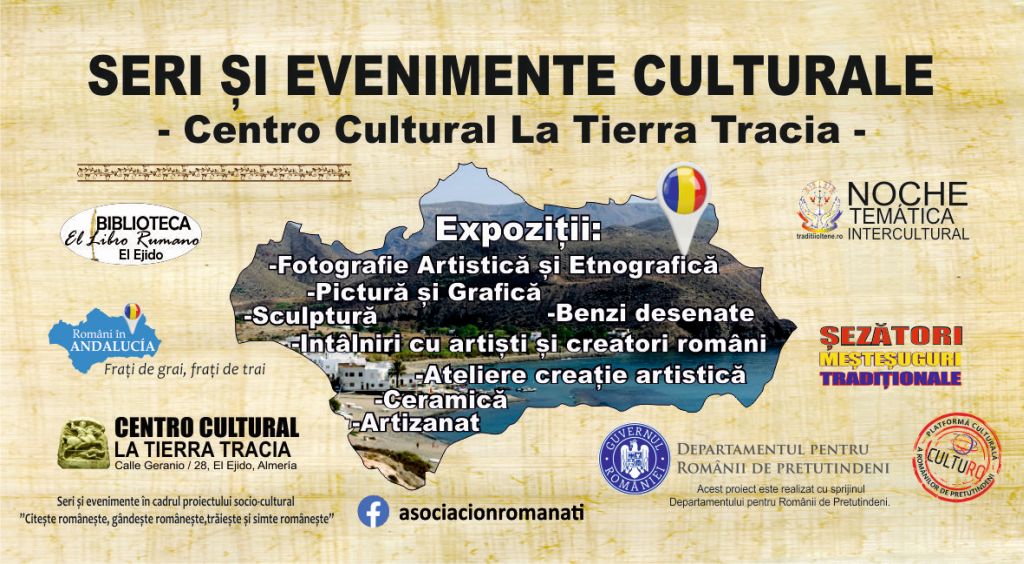 Principalul proiect este Centrul Cultural La Tierra Tracia din El Ejido, Almeria, constituit ca un centru educațional – cultural și o platformă de expunere a artiștilor și creatorilor români in dorința de a facilita intâlnirea acestora cu publicul larg. Centrul Cultural La Tierra Tracia adună intr-un singur loc o bibliotecă “El Libro Rumano”, o sală de expoziție pictură, etnografie, folclor, gastronomie, costume populare, ceramică, artizanat, librărie cu carte românească, ateliere creație și șezători, limba română și lectură copii.