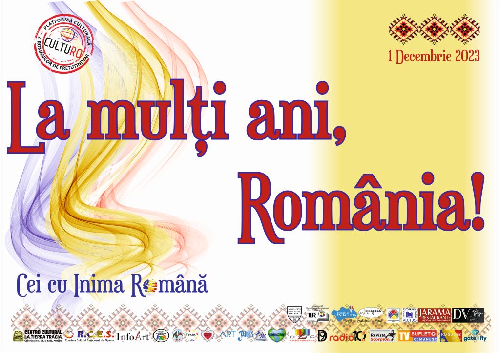 „Citește românește, gândește românește, trăiește și simte românește“., Centrul Cultural La Tierra Tracia - BLOG, La zi La Mulți Ani, ROMÂNIA! Dată: 1 decembrie 2023Autor: Redacția Români în Andalucía 0 Comentarii La Mulți Ani, ROMÂNIA! La Mulți Ani Români, oriunde v-ați afla! Partajează asta: Dă clic pentru a partaja pe X(Se deschide într-o fereastră nouă) X Dă clic pentru a partaja pe Facebook(Se deschide într-o fereastră nouă) Facebook Apreciază Încarc... Similare