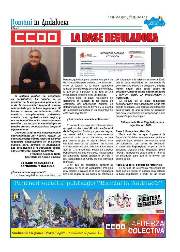 – Área de Acción Sindical Unión Provincial CCOO Almería – LA BASE REGULADORA