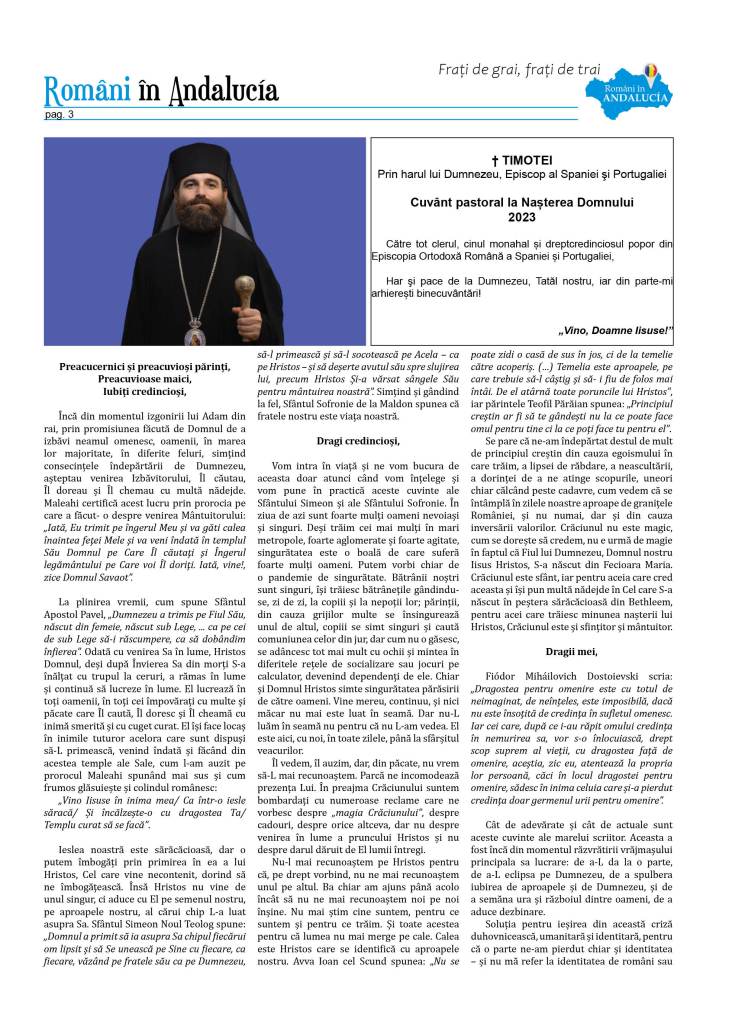 – Cuvânt pastoral la Nașterea Domnului 2023 – † Episcopul Timotei al Spaniei şi Portugaliei