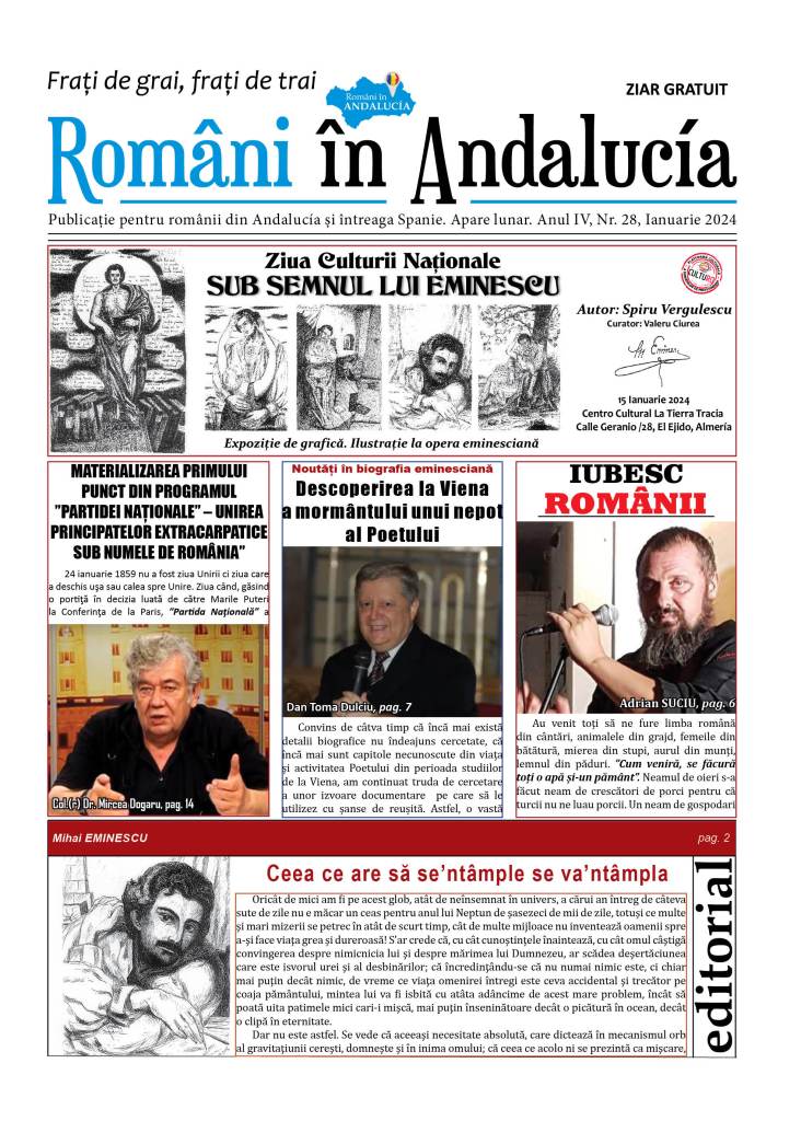 A apărut numărul 28 al Publicației ”Români in Andalucía – Frați de grai, frați de trai”, Ianuarie, 2024 – ”SUB SEMNUL LUI EMINESCU”