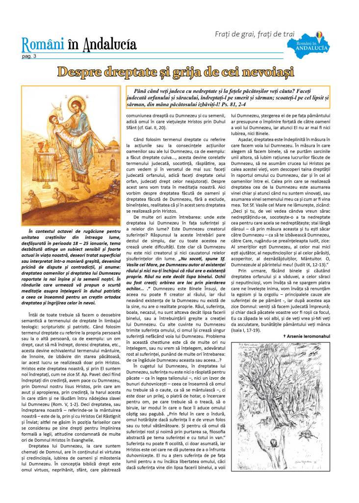 – † Arsenie Ieromonahul – Despre dreptate și grija de cei nevoiași