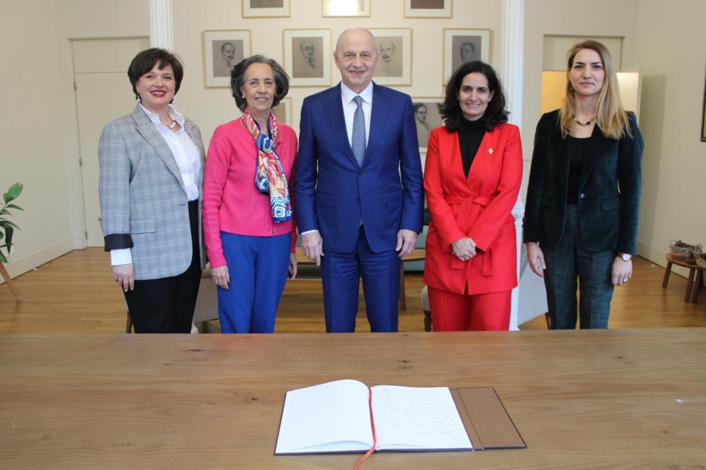 Ai acceptat invitația de a modera și vine ziua lansării de carte… o vreme mai rece decât de obicei în Madrid, ceasul bate orele 18:15, iar pe poarta Fundației intră mașina cu antemergător a Secretarului General Adjunct al NATO, românul Mircea Geoană. Îl așteptăm comme il faut cu o delegație de primire: subsemnata, Însărcinatul de Afaceri al Ambasadei României, doamna Raluca-Maria Mihăilă, directoarea Fundației ORTEGA-MARAÑON, doamna Lucia Sala Silveira și directoarea pe probleme internaționale a Fundației, doamna Noemi Cueto Fernández-Peña pentru a îi face turul oficial al edificiului (a cărui renovare s-a realizat recent sub patronajul MS Regele Filip al VI-lea al Spaniei) și pentru a semna în Cartea de Onoare. Cunoscându-l de 20 ani pe domnul Mircea Geoană, intuiam ce surpriză plăcută vor avea doamnele de la conducerea Fundației… când a început să le vorbească într-o engleză impecabilă, să facă o scurtă istorie a relației diplomatice dintre cele două state cu punctul de plecare chiar de la etnogeneza poporului român: cucerirea Daciei de către împăratul roman Traian, care era originar din Hispania, provincia Bética, orașul Itálica (undeva în apropierea Seviliei de azi), trebuia să vezi cum se schimba mina și cum se lumina chipul celor două reprezentante ale Fundației spaniole. Iar când, Mircea Geoană a făcut și câteva observații de ordin arhitectural în ceea ce privește clădirea istorică, succesul era asigurat: o intrare cu impact în inima unui loc emblematic al lumii intelectuale și diplomatice din Spania. Aici, am intervenit subtil, și le-am explicat doamnelor că „vinovată” de aceste cunoștinte specifice, este fără urmă de tăgadă soția domnului Geoană, Mihaela, care a studiat arhitectura la București și care are un simt estetic deosebit. Se semnează în Cartea de Onoare, se face schimbul de cadouri protocolar și poza oficială ca o piedică în calea uitării.