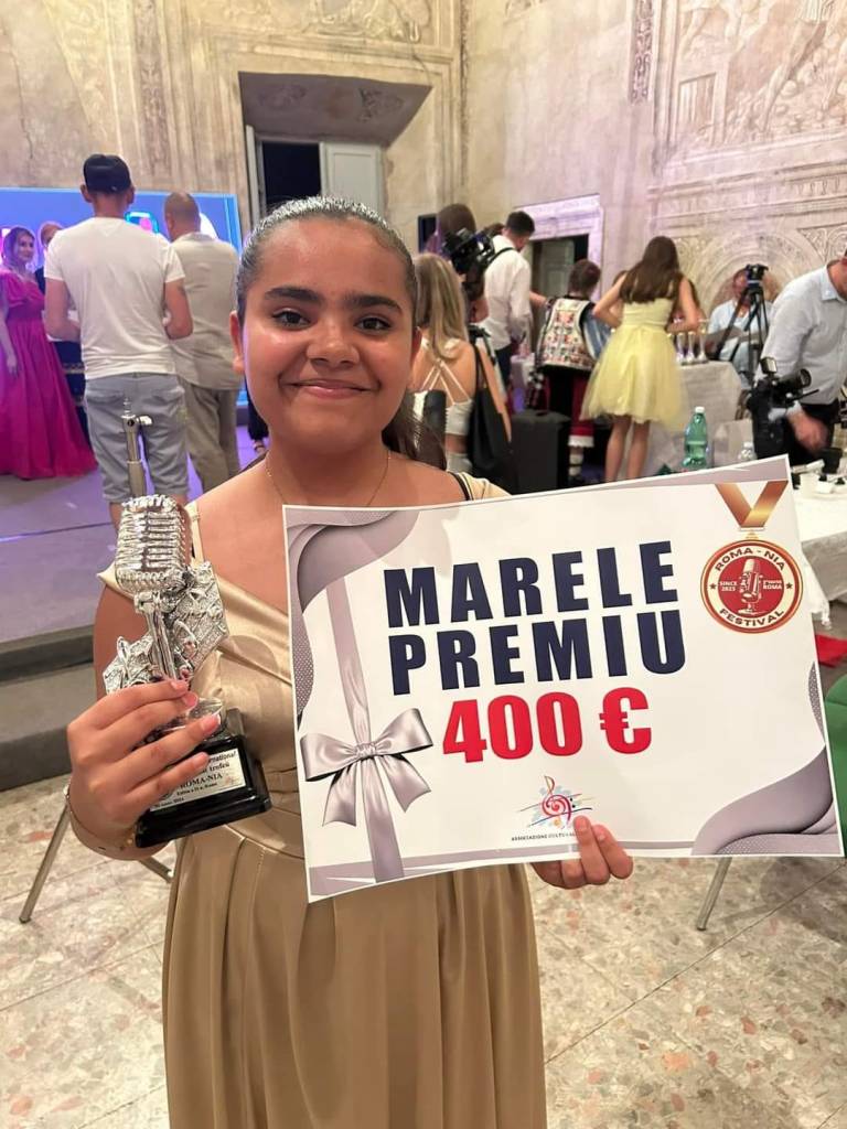 Iată și cele mai importante premii acordate în cadrul Concursului: Trofeul Festivalului, precum și un premiu de 400 de euro, a fost acordat tinerei Melissa Memeti (13 ani, Italia). Premiul I a fost câștigat de către Mara Antonia Bunea (10 ani, România) iar Premiul II de către Anna Maria Mihalache (11 ani, Italia). Cele două tinere au primit vouchere în valoare totală de 600 de euro pentru a-și continua pregătirea muzicală la Roma-Nia Academy.