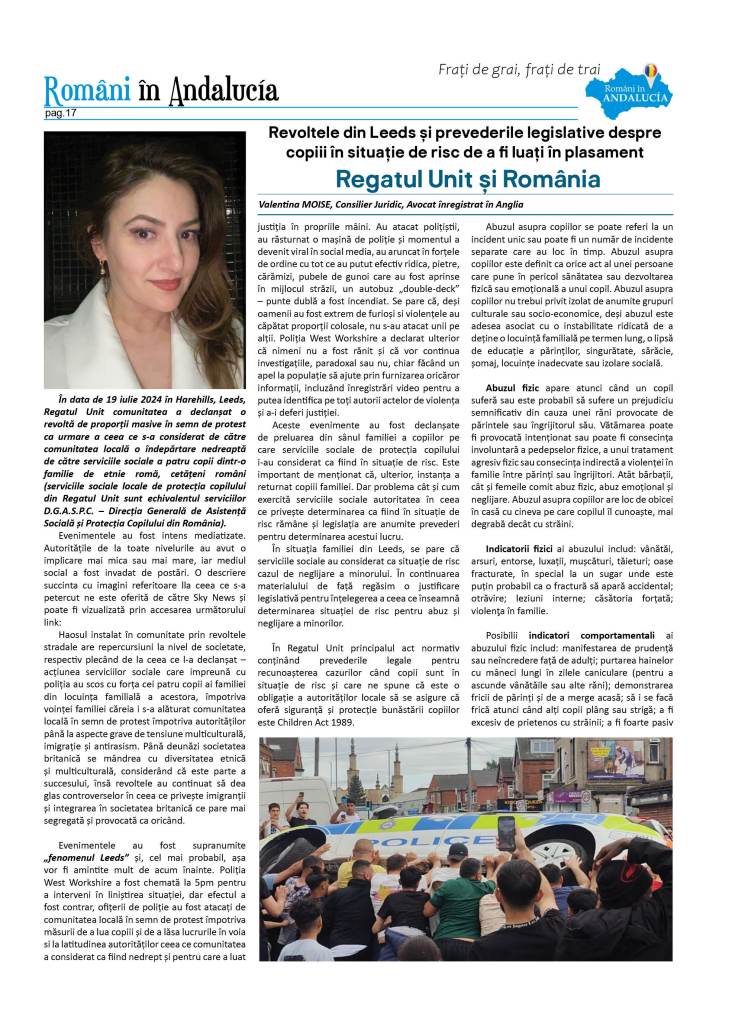 – Valentina MOISE – Revoltele din Leeds și prevederile legislative despre copiii în situație de risc de a fi luați în plasament – Regatul Unit și România