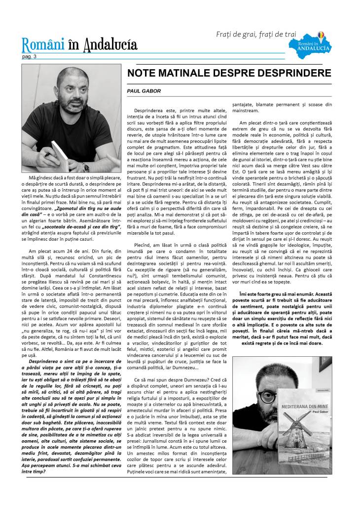– Editorial: Paul Gabor – NOTE MATINALE DESPRE DESPRINDERE