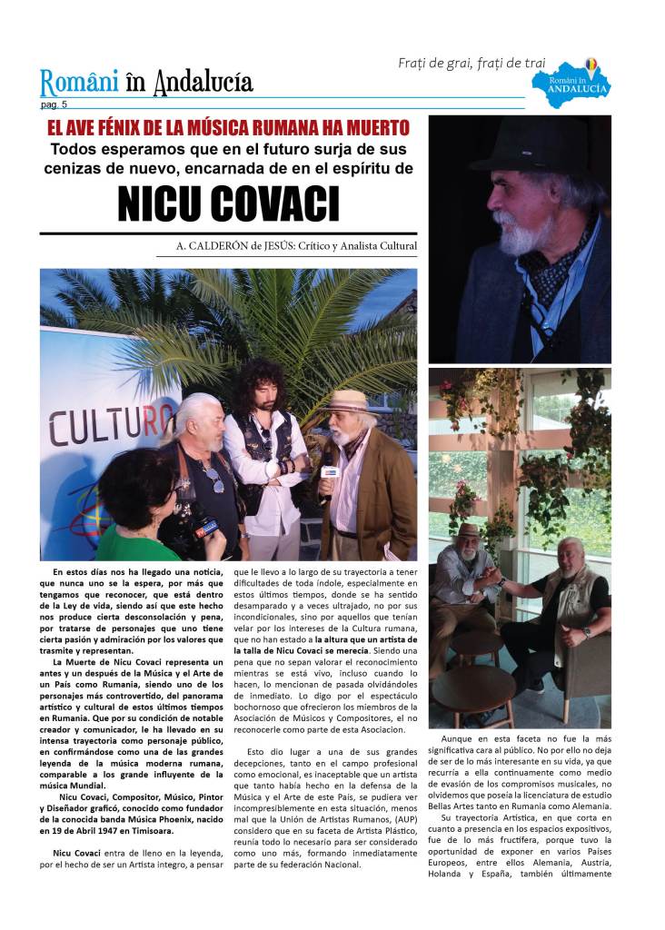 – A. Calderón de Jesús – EL AVE FÉNIX DE LA MÚSICA RUMANA HA MUERTO – Todos esperamos que en el futuro surja de sus cenizas de nuevo, encarnada de en el espíritu de NICU COVACI
