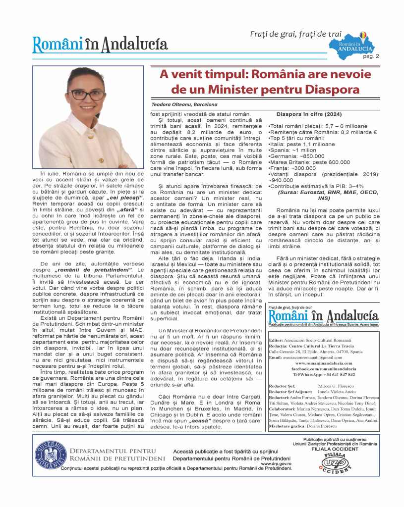 – Editorial: Teodora Olteanu – A venit timpul: România are nevoie de un Minister pentru Diaspora