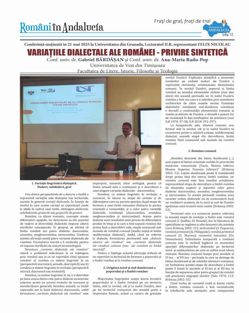 – Conf. univ. dr. Gabriel BĂRDĂȘAN și Conf. univ. dr. Ana-Maria Radu-Pop – VARIAȚIILE DIALECTALE ALE ROMÂNEI – PRIVIRE SINTETICĂ