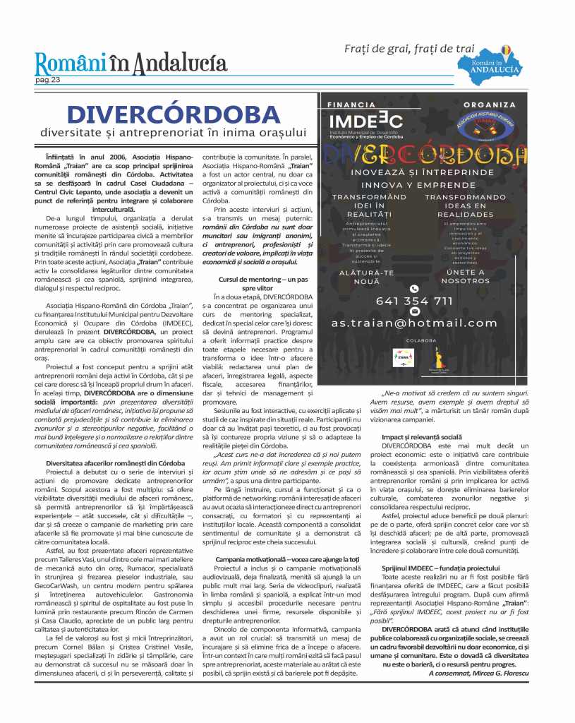 – Asociația Hispano-Română „Traian” – DIVERCÓRDOBA, diversitate și antreprenoriat în inima orașului